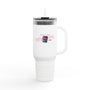 Introducing the perfect companion for your on-the-go lifestyle: the Insulated Travel Mug. This 40oz tumbler provides exceptional temperature retention, keeping your beverages hot or cold for hours. Whether you're commuting to work, hitting the gym, or embarking on a road trip, this versatile mug ensures you stay hydrated and refreshed. Its ergonomic handle allows for effortless carrying, while the leak-proof lid provides peace of mind against spills. The vibrant UV-DTF printed design adds a personal touch, making it an ideal gift for coffee lovers, outdoor enthusiasts, and busy parents alike. Celebrate special occasions with this thoughtful gift during holidays, birthdays, or anytime a loved one needs a practical yet stylish drink container. Embrace convenience and style with this essential travel accessory.